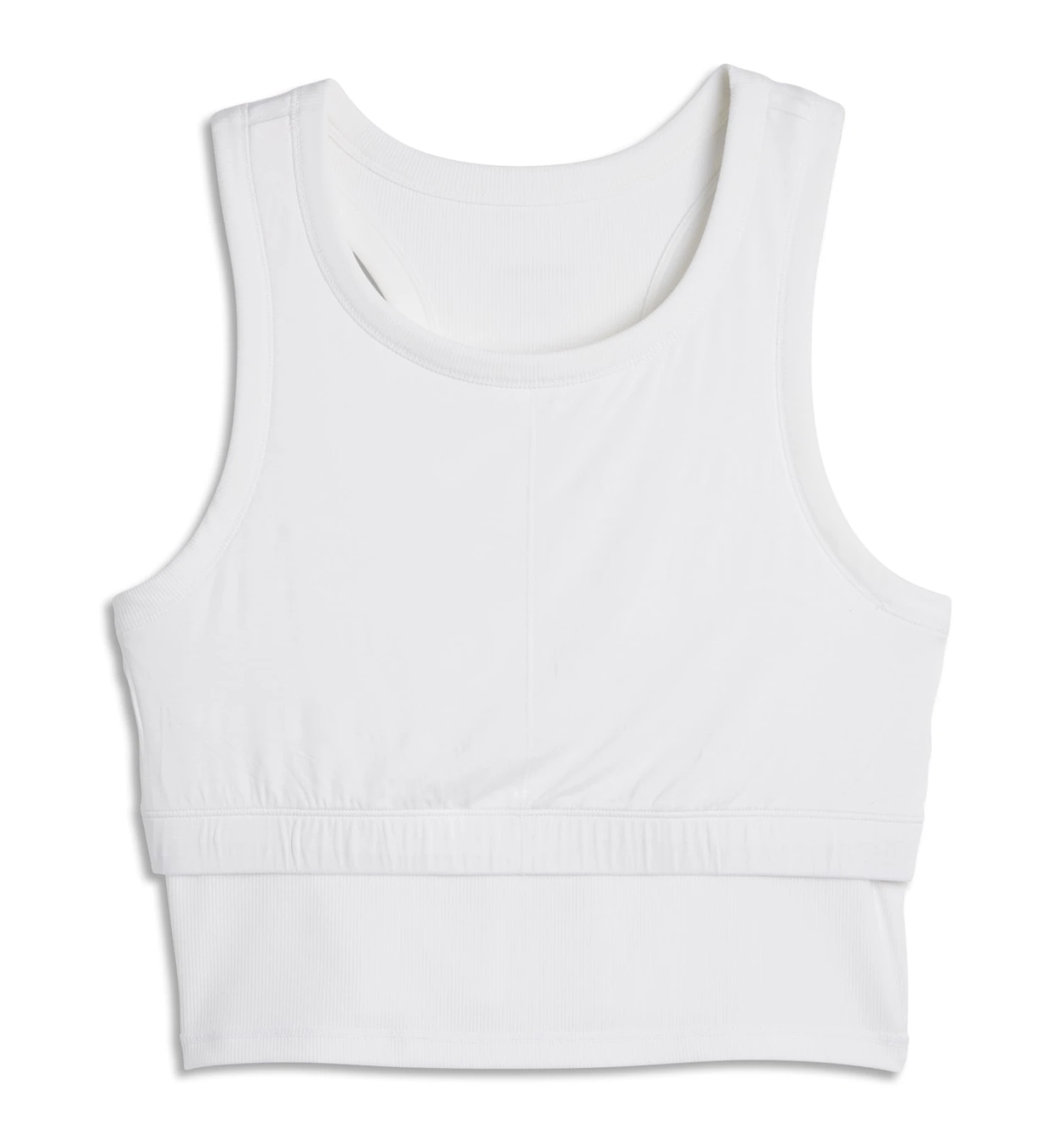 - Longline silhouette with racerback cut