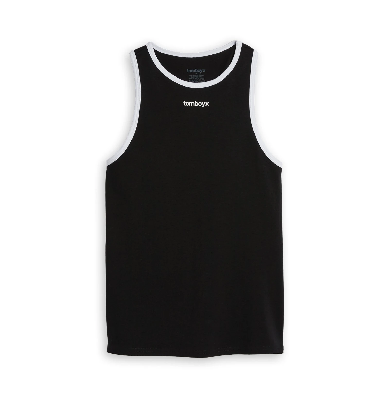 A sporty classic with a tomboyx twist. Designed with a slim fit and high neckline, it features a bold centered logo, racerback cut, and self-bind finishes for a clean, modern look. Wear it on its own or layered—this tank is built to move with you.