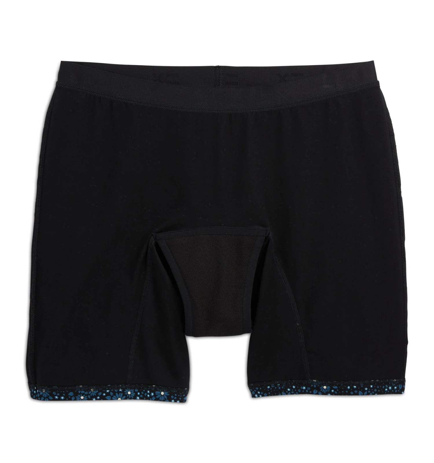 No leaks, no mess, no worries. First Line is designed to help keep you dry and on-the-go with confidence. With built-in leak protection for light days or incontinence, you’ll be able to relax, move, and breathe easy. The First Line Period 9″ Boxer Brief features a floating gusset that can fit a pad with wings for some extra coverage when you need it. Finished with water resistant foldover elastic and threads. Constructed with a new and improved wider and longer pad for increased absorbency. And, now you can machine wash and dry without a fuss.