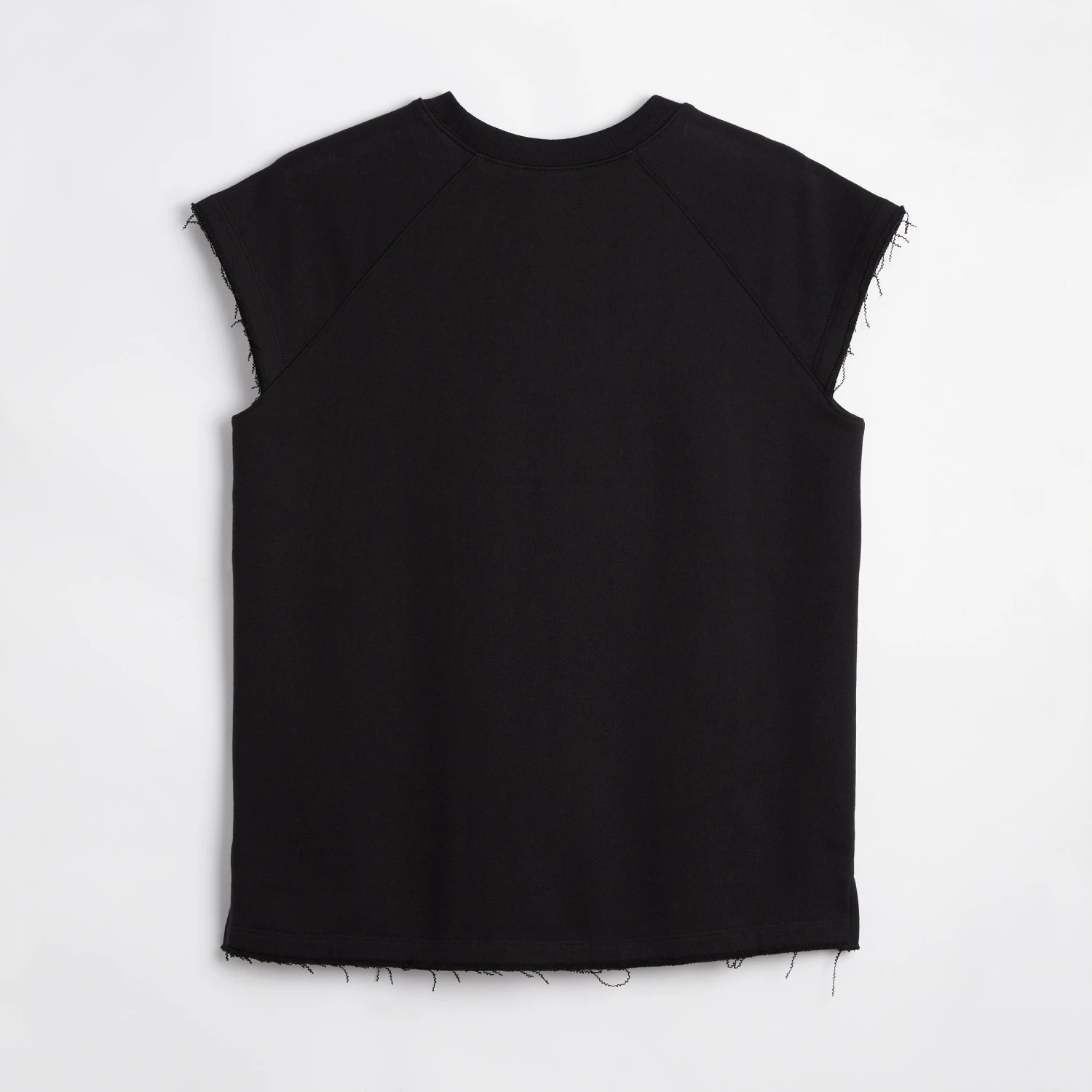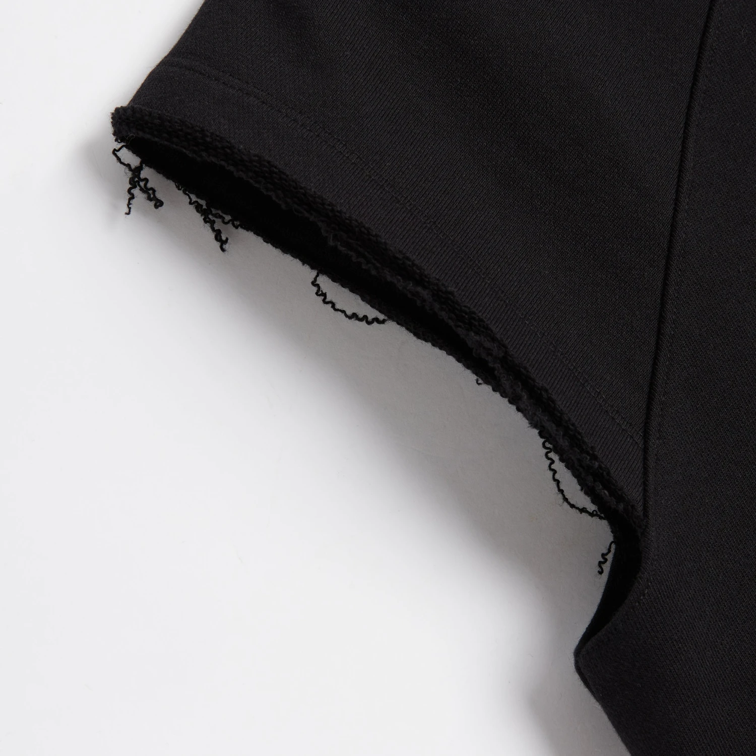 Your layering MVP—with an edge. Made from luxe French Terry—soft, breathable, and perfectly broken-in from day one—this cut off crew is all about effortless style. The classic crew neckline and raw-cut seams give it that lived-in, just-right feel, while the cut-off raglan sleeves bring a sporty, modern twist. It’s the kind of piece that plays well with everything: throw it over a tank and shorts for a coffee run, pair it with our Flare Pants for a coordinated set, or wear it with denim and sneakers for weekend hangs. Lightweight enough for warm days but cozy enough for cool evenings, it’s the ultimate year-round layering piece you’ll keep reaching for. Tip: layer over our classic tees for an easy fall outfit.