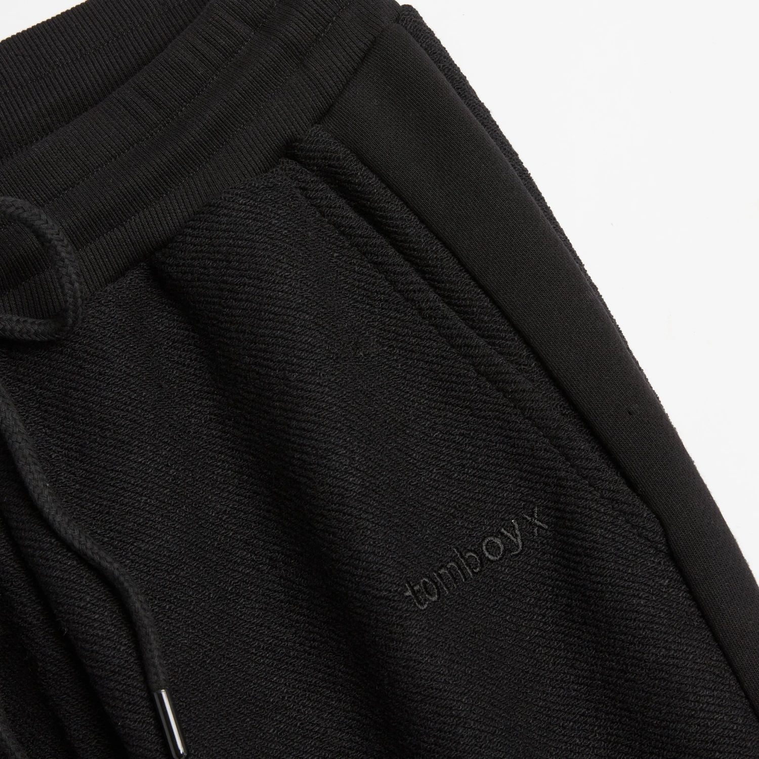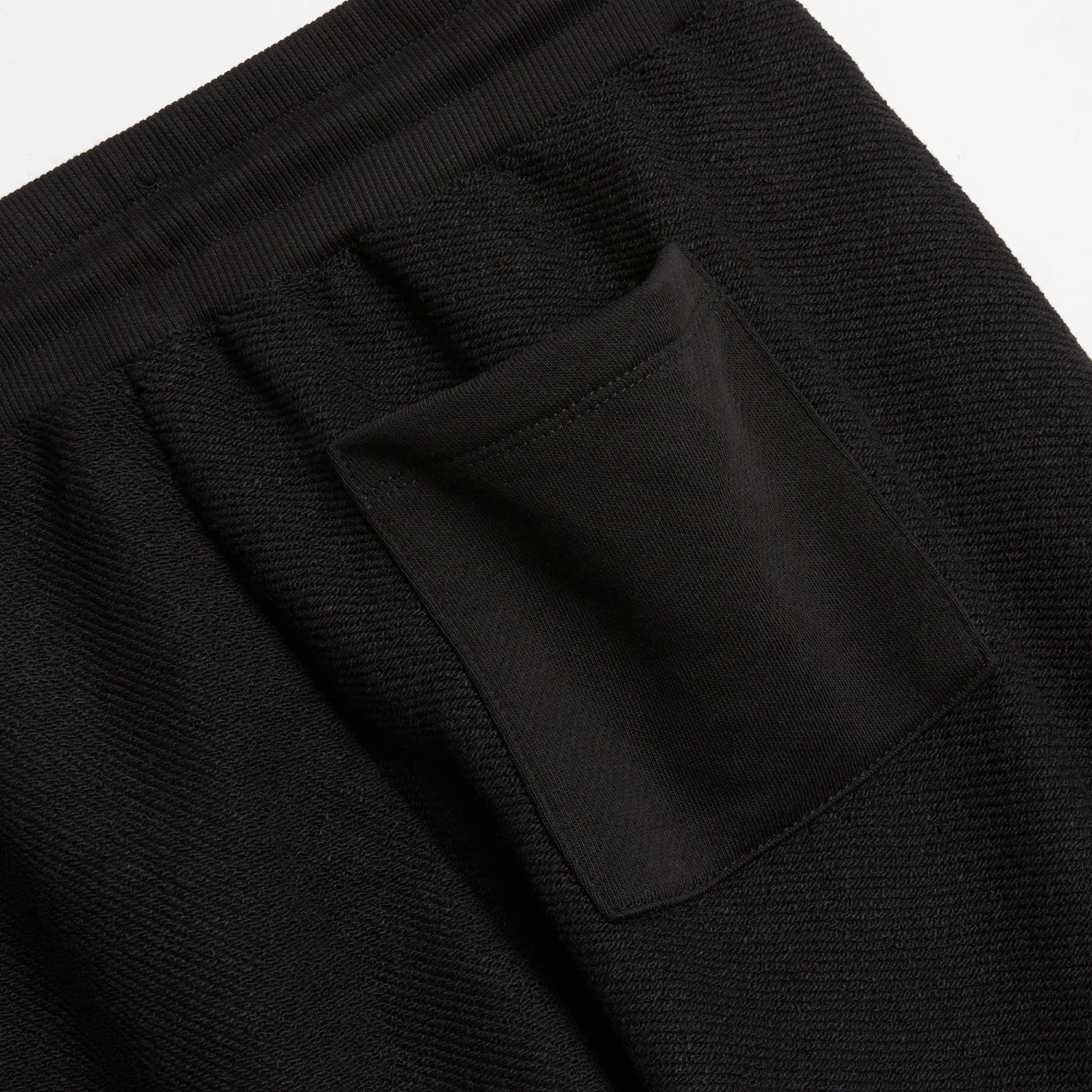 - Rib-wrapped, elasticated waistband with channeled drawcord