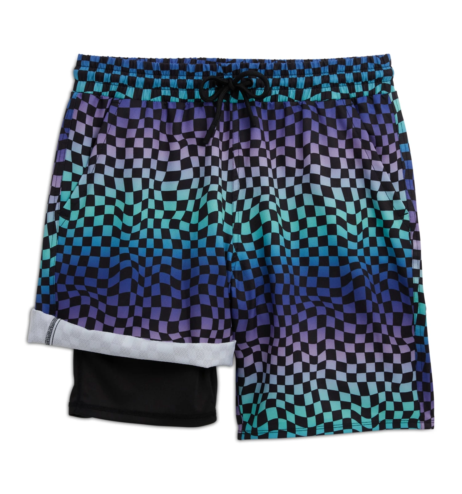 Swim 9″ Lined Board Shorts – Checker Chaos(Swim 9 Lined Board Shorts Checker Chaos)