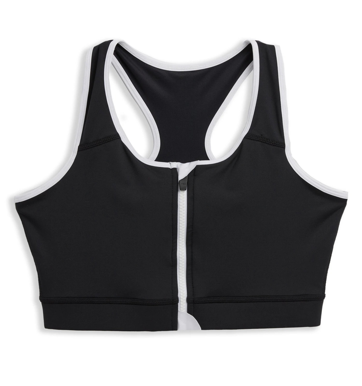 Our new and improved Racerback swim top takes splash-time fun to a new level with vibrant color accents. A classic TomboyX style, this sporty cut is designed to keep you active and on the move. Mesh-lined panels in the front provide support and pockets for removable foam cups. A full center zip with an internal hook-and-loop closure to makes it easy to take on and off. Top-to-bottom zipper guard protects skin from irritation. Full coverage fit means one less thing to worry about.