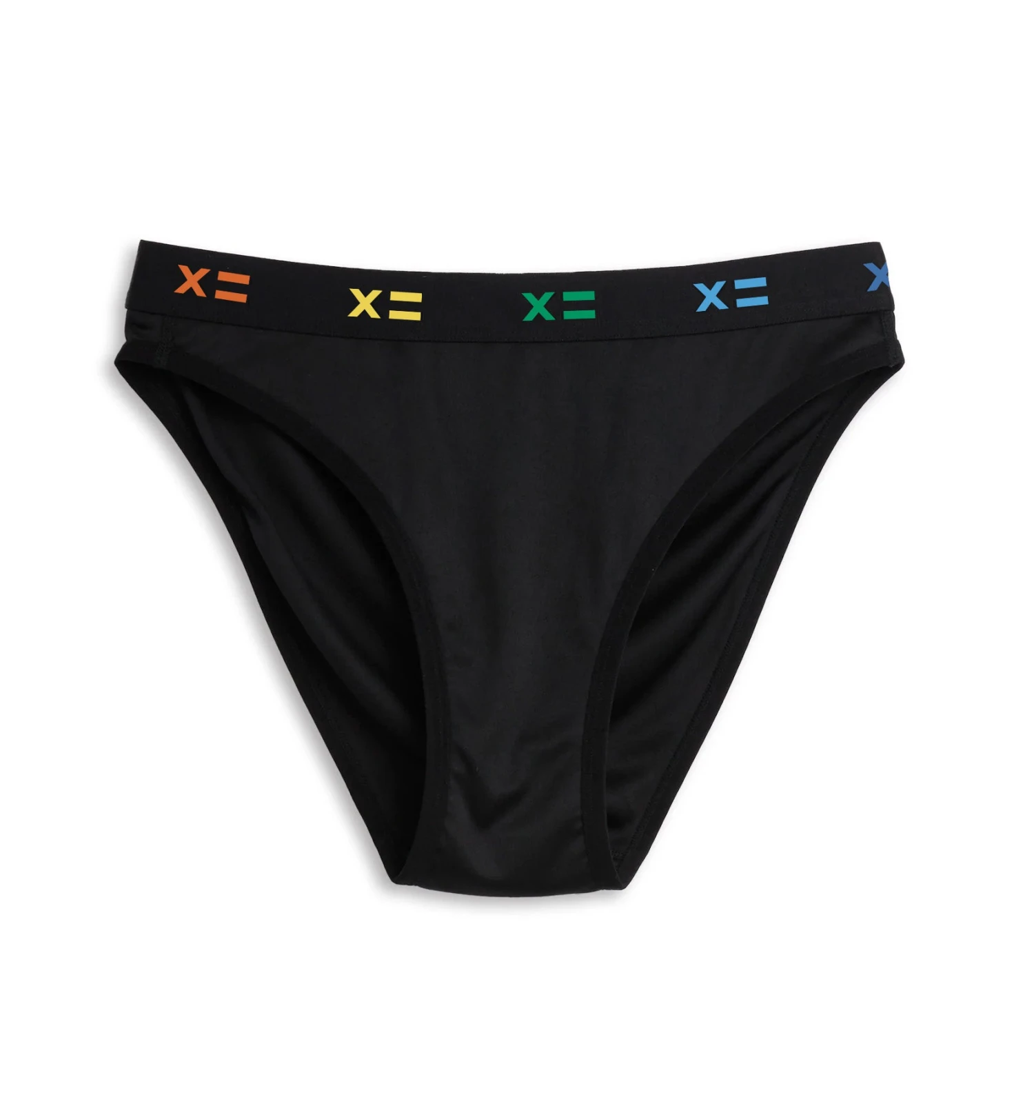 All-day confidence made stylish, secure, and comfortable. This high leg, mid-rise bikini-cut underwear features double-layered interlock polyester with 1-way stretch, delivering snug, secure compression while retaining breathability, moisture wicking, and quick drying performance. Antibacterial, odor-resistant fabric treatment ensures freshness, and a wider crotch than our classic bikini style delivers a more accommodating fit.